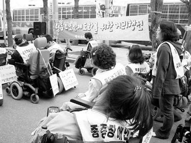 우리 사회를 구성하고 있는 각종 법, 제도, 정책들은 마치 장애우가 존재하지 않는다는 듯이 장애우를 배제한 채 설계되고 있다.
