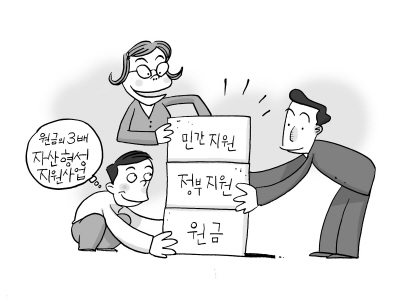 자산형성지원사업은 기초생활보호대상자 가구가 가령 한 달에 10만원을 저축하면 정부와 민간재단에서 3년간 저축액의 1배나 2배를 더 지급해 주는 제도인데 3년간 저축한 원금이 360만원이면 거기에 360만원을 더해 두 배인 720만원을 만들어주거나 세 배인 1천80만원을 만들어 줘서 기초생활수급자 가구가 빈곤에서 탈출할 수 있도록 지원해 주는 제도이다.