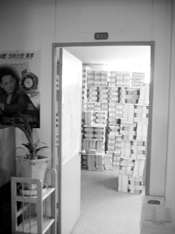 사무실에는 아직 팔지 못한 책들이 가득했고, 이 회사 영업직원이 미송초등학교에 뿌렸던 전단지와 비슷한 ‘학부모님께’라든가 ‘도서바자회 안내문’으로 시작되는 전단지들도 잔뜩 쌓여있었다.