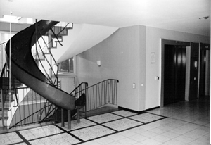 ▲계단과 함께 있는 미끄럼틀은 화재시 장애학생들이 이용하는 비상설치물. |