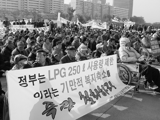 그래서 2001년 당시 장애우에 대한 적절한 보완책도 없이, 엘피지 가격을 2백퍼센트로 올리겠다는 정부 방책에 장애계는 저항할 수 밖에 없었다.