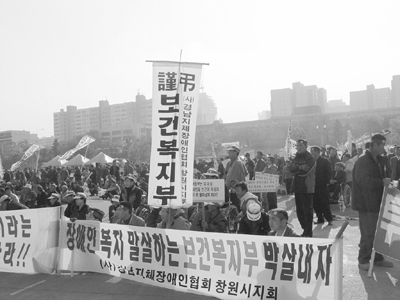 지난 9일에는 서울 여의도 고수부지에서 4천여명의 장애우들이 모여 항의 집회를 했고, 같은 날 맞은 편에서는 차량시위도 벌어졌다. 또한 부산, 대구를 비롯한 전국 7개 도시에서 동시다발적으로 차량시위가 있었다. 이는 장애계에서도 근래에 보기 드문 대규모 집회였다.