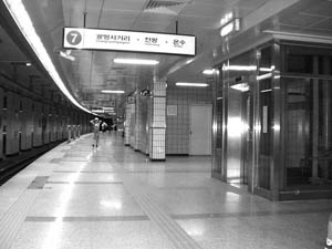 이곳은 계단이 통로 양끝에 있기 때문에 사람들은 중간에 있는 엘리베이터를 타기 위해 서로 몸싸움까지 하는 경우도 종종 있다. 이걸 보면 ‘이토록 편의시설을 원했던 사람들이 많은데, 그런데 왜 장애우들이 외롭게 쇠사슬을 묶고 지하철 선로를 점거하는 투쟁을 할 때 함께 목소리를 높이지 않았을까?’섭섭함과 아쉬움이 밀려들기도 한다.