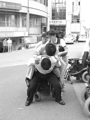 식이 열리고, 구청장실이 있는 광진구청 본관은 삼면이 가파른 계단으로 둘러싸여 있어 장애우는 도무지 접근하기 어려운 난공불락의 요새였고, 흔한 에스컬레이터 한 대 설치돼 있지 않아서 마치 구청장이 “장애우는 절대 만나지 않겠다”는 선전포고를 하고 있다는 느낌을 지울 수 없었다.