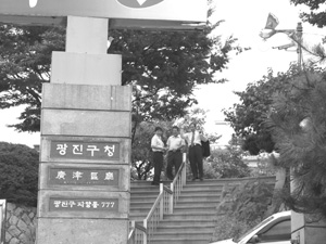 이래 놓고 광진구는 구청 입구에 ‘일류 광진구를 지향한다’는 표어를 내걸었다.