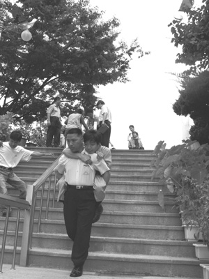 이 날 구청장 얼굴을 보기 위해 일군의 장애우들이 광진구청을 방문했는데… 맙소사! 장애우들은 구청장 얼굴을 보기는커녕 도심에서 그것도 대낮에 땀을 뻘뻘 흘리며 팔자에 없는 힘든 산악 암벽 타기 훈련을 해야 했다.