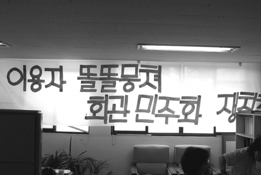 노조측의 활동은 지난 3월 8일로 거슬러 올라간다. 노조원들은 점심시간을 이용해, 이사회 측에 ‘현 관장 정년 이후의 대안을 마련할 것’을 요구하는 피켓시위를 벌인다. 그러나 돌아온 것은 ‘3명에게는 정직 1개월, 8명에게는 견책’이라는 ‘징계’ 뿐. 그 후 노조측은 항의의 뜻으로 출근피켓 시위를 벌였는데, 사측은 사진을 찍으며 노조의 시위를 감시하고 경계했다.