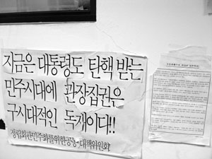 한 쪽은 ‘민주화 투쟁’이라 주장하고, 한 쪽은 ‘절차상 아무런 하자가 없는 문제에 대해 호도하고 있다’는 주장이 여전히 평행선을 달리고 있다.