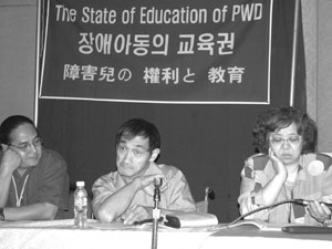 - 일본에서는 변함없이 특수교육이 정부에 의해 분리교육을 원칙으로 추진되고 있다. 한국에서도 여전히 분리교육 중심의 장애우 교육정책이 시행되고 있다. 필리핀에서는 통합교육이 시작되었지만 아주 작은 움직임에 불과하다. 우리는 3국의 정부에 통합교육 향상을 위해 노력할 것을 요구한다.