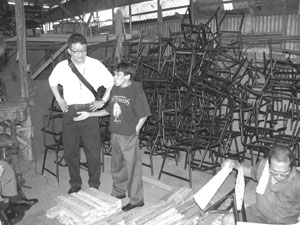 한국과 일본 참가자들이 첫 번째 방문한 곳은 BBMC 작업장. 마닐라 외곽에 위치한 작업장은 조용한 시골마을 같은 분위기의 주택가 한복판에 위치해 있었다. 30여명의 대규모 인원이 한꺼번에 들어가기에는 비좁은 듯 보인 작업장 안은 장애우 노동자들의 바쁜 손놀림과 기계음으로 시끌벅적 했다. 휠체어에 앉아서 용접을 하는 사람, 클러치를 짚고 여기서 저기까지 의자를 운반해주는 사람, 그리고 다시 그걸 칠하는 절단 장애우, 나사를 박는 시각장애우, 다시 차곡차곡 정리하는 한 손이 불편한 사람. 모두 장애우 노동자들의 모습이었다. 현재 BBMC 작업장 활동은 장애우들에게 뿐만 아니라 지역사회 전반에 영향을 미치고 있다고 한다. 워낙 경기불황과 사회보장정책의 미비로 1달러 미만으로 하루를 연명하는 국민이 대다수이기 때문에, 어떤 식으로든 자립적으로 생계를 꾸려나가고 있는 모습은 신선한 희망이기 때문이다. 그곳 장애우 노동자들의 임금은 일주일에 2,500페소(약 20달러), 경력이 오래된 사람의 경우, 더 많은 임금을 받기도 한다. 의자 등은 하루에 100여개 정도 생산하고 있었는데 모두 직접 손으로 제작하는 수공업 방식을 쓰고 있었다. 경쟁업체도 만만치 않게 많아 판로확보 등에 어려움이 있긴 하지만, 그나마 작업장의 의의를 중점에 두고 홍보해 공공성을 인정받고 있다. 교육부나 학교 등에서 주문이 들어오고 있다고 한다.