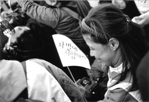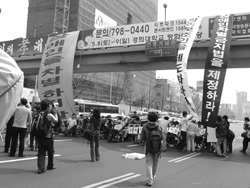 그녀는 “요즘, 이성문제로 약간 고민하고 있어요”라며 살짝 귀뜸했다. 그런데 표정이 밝지만은 않다. 왠지 그녀는 빨리 마음 정리를 하려는 것 같았다. 결혼 적령기에 놓여진 성인으로서 당연한 고민이지만 마치 사치처럼 느껴지는 가보다. 투쟁의 주체로 나선 중증장애우들에겐 소중한 감정도 애써 거부해야 하는 그 무엇으로 다가오는 게 오늘을 살아가는 중증장애우들의 모습이다.