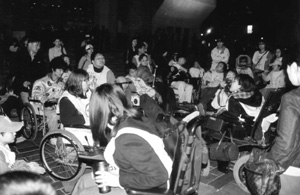 김대성: 전 좀 다른데요, 80년대 후반 90년대 초, 학생, 시민, 봉사단체 구분없이 함께 활동했습니다. 당사자들만의 힘으로는 할 수 있는 게 거의 없었죠. 그래서 비장애우들의 결합이 너무나 기뻤습니다. 외부와 함께 하는 것 자체가 힘이었습니다. 든든했죠. 역량이 절대 부족이었어요. 당사자들끼리 집회 한 번 제대로 못했으니까요. 90년대 후반에 당사자주의가 본격적으로 표방되었는데, 배타적 당사자주의는 올바른 당사자주의가 아닙니다. 장애를 가졌더라도 경증이 중증을 대신할 수 없고, 지체가 시각장애우를 대별할 수도 없습니다. 이런 의미에서 보면….