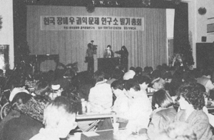연구소 설립과 <함께걸음> 창간“1988년은 장애우들이 대사회적으로 자기 입장을 밝히고 목소리를 높이며 싸운 첫 해로 기록될 것이다. 그 전에는 장애우들이 순한 양이었다. 가령 시위를 해도 밖에도 못 나오고, 김순석 열사 추모와 장애우 판사 임용 거부 사건이 벌어졌을 때도 정립회관 안에서만 시위를 했다. 그랬던 장애우들이 밖으로 나온 것은 87년 말 대통령 직선제의 영향이 컸다.”