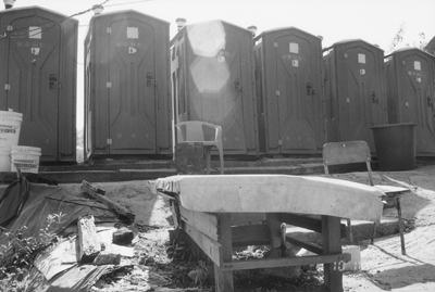 지난 십 수년에 걸쳐 이곳 구산동 산동네는 재개발 소문이 끊이질 않았다. 지난 95년 7월에도 주택공사에서 철거를 시도한 적 있는데 주민들은 가스통을 들고 각혈을 하면서 온 몸으로 강제철거에 맞섰다. 용역을 동원해서라도 과감히(?) 철거할 것은 철거한다는 주택공사나 건설업체도 이곳만은 쉽게 건드릴 수 없었다. 구청 또한 일반 빈민지역과는 다른 특수한 문제가 존재하는 등 총체적 문제점을 안고 있는 마을이란 것을 알기 때문이었다. 그래서 매번 소문이 무성했어도 소문으로 끝나버리는 경우가 많아 철거는 양치기 소년의 외침으로 끝나고 말았다. 주민들 또한 “우리는 다른 도시빈민들과 다른데 아프고 병든 사람들만 모여있는 우리를 누가 함부로 건드리겠느냐!”며 재개발 소문을 쉽게 받아들이지 않았었다. 그들 또한 이곳이 더 이상 대안 없는 최후의 보루임을 자각하는 것이다.