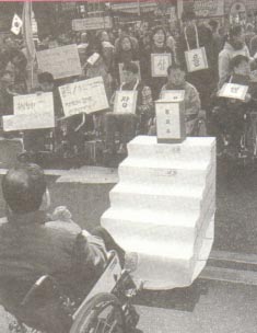 어떤 경위로 위 내용이 교과서에 실렸는지는 모르지만, 이 교과서의 저자에게 감사의 뜻을 전하고 싶다. 선거권 개정과 관련하여 운동을 해 온 간사들이 이 교과서를 복사해서 여기저기 붙이고 다닐 만큼 굉장한 일이었던 것이다. 이러한 교육을 받고 자라나는 우리 아이들이 이 세상의 중심이 되었을 때는 장애인문제가 특별하지 않은 아주 당연한 일로 받아들여질 것이다. 우리들은 그 날을 위해 좀더 힘을 내서 목소리를 내자. 우리 모두 함께 갈 수 있는 내일을 위해.