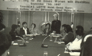 유니세프 극동지역에서 아동보호 분야에서 일하고 있는 메기몽치(Maggie de Monchy)는 장애아의 어머니다. 그는 장애소녀와 장애여성의 인권에 대해 발표하면서 가정폭력과 아동의 상품화, 전쟁 등이 아동과 여성을 장애우로 만들고 있다고 지적했다. 그리고 이 문제를 해결하기 위해서는 장애우의 사회통합과 장애우의 조기교육이 반드시 필요하다고 강조했다. 모든 발표가 끝난 뒤, 각국과 기관을 대표해 참가한 장애여성들은 앞으로의 연대를 한마음으로 다짐하며 행사를 마쳤다.