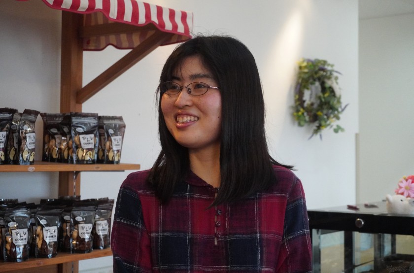 간바컴퍼니에서 15년째 근무하고 있는 발달장애인 근로자 아사우미 유리 씨(32세). 그녀는 간혹 질문의 내용을 이해하지 못해 고개를 갸우뚱하며 다른 답변을 하기도 한다. 그럴 때면 유리 씨에 대해 잘 알고 있는 간바컴퍼니의 스탭 야마지 케이타 씨가 재차 이해하기 쉬운 표현으로 설명해주면 조금 고민하다 답변을 이어간다.