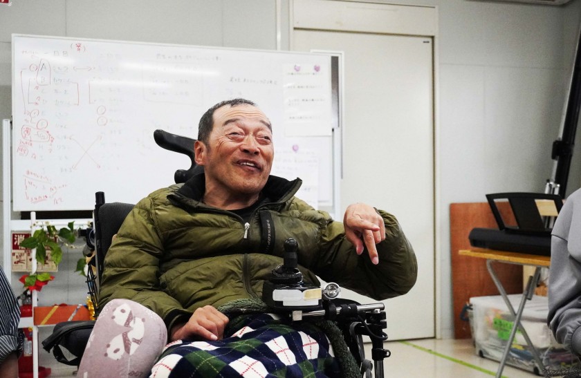 가타오카 히로시 씨는 마치카도 프로젝트에서 활동하는 뇌병변장애인 당사자다. 뇌성마비로 인해 태어날 때부터 장애를 가진 그는 평생을 일본의 장애인 지원체계 안에서 살아왔다. 휠체어를 이용하고 있으며 발화에 어려움이 있지만 천천히 또박또박 자신의 이야기를 들려주었다.