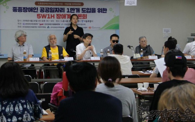 △ 2018년 당시 중증장애인 공공일자리 도입을 위한 토론회 모습 ⓒ함께걸음