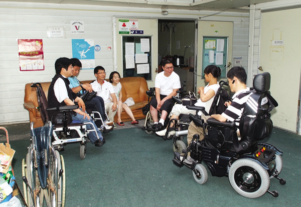 센터 소속의 상근자가 11명, 사회적 일자리 사업에 12명, 소속된 활동보조인이 94명 내외, 거기에 장애인 당사자 활동가가 20명이나 되는 각각의 조직이 그 센터 안에서 움직이고 있단다. 규모가 상당히 크다고 느껴졌기에, 이 모든 걸 어떻게 운영하느냐 물으니까 국비지원이 올해 비로소 시작됐다고 한다. 전국의 20군데 자립생활센터를 지원한다는 보건복지부의 국비지원이 올해 처음으로 이뤄졌다는 건데, ‘올해 처음’이라는 표현에서 생각이 멈춰졌다. 이 정도의 인원을 유기적으로 움직이고 있는데, 국가 차원의 지원이 없었다는 건 그동안의 어려움을 되씹게 만드는 반증이 아닌가.