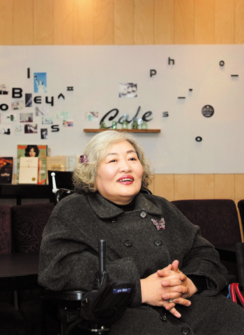 “진짜로 제가 배워야 할 게 훨씬 더 많은 곳이 세상이더라고요. 옛날 사람들 말처럼 그냥 팔자려니 하며 살아왔다는 게 저는 너무 후회스러워요. 그렇기 때문에 어릴 때부터라도 노력할 수 있는 거라면 노력을 더 많이 하며 살아야 한다고 말하고 싶어요. 철이 없을 때 하는 실수는 좀 봐줄 수 있는데, 제 나이 되어서 실수를 하면 그건 정말 부끄러운 일이겠죠. 그러니까 자기 장애를 부끄러워하지 말고, 장애를 가진 그 자리에서 할 수 있는 노력을 다한다는 것, 그게 정말 지나고 나면 후회 없는 삶을 사는 게 아니겠나 생각합니다. 부끄럽다고 가만히 있으면 정말 부끄러워지는 겁니다. 장애를 가진 누구에게든 저는 정말 과감하게 도전하는 삶을 사시라고 말씀드리고 싶어요.”