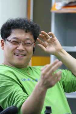 박: 그냥 타고 다녔어요. 무면허로. 거기다 머리가 너무 커서 헬멧도 안 들어가~. (모두 웃음). 근데 그렇게 열악한 곳에서 살다 대전에 갔더니 대전은 더 낙후됐단 생각이 들더라고요. 어느 지역이든 택시를 잡아보면 그 지역 장애우들이 어떻게 사는지를 알 수 있는데, 대전은 택시를 잡으니까 '가다 간질이라도 하면 어쩌느냐'면서 태워주질 않더라고요.