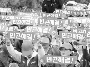 그러나 정부는 빈곤문제에 관심이 없다. 올해 국방예산은 10%가 늘어난 2조2천억인데 반해 빈곤대책을 위한 정부예산은 오히려 3천6백억 정도가 감소가 됐다는 것이 김 의장의 주장이었다.