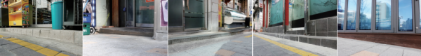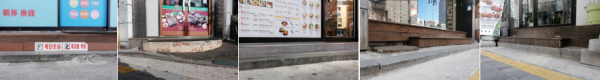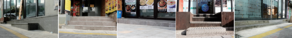 중구센터 주변 상가들의 입구 모습. 약속이라도 한 듯 모두가 계단과 턱으로 막혀 있다