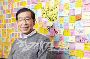 서류를 분류해 파일로 정리하는 것이 취미라는 박원순 서울시장. 일벌레, 책벌레인 박 시장의 집무실에 들어가서 본 것 중에 가장 인상적인 것을 꼽으라면, 수백 개쯤 되 보이는 정리된 파일들과 책상에 높이 쌓여있는 서류들, 그리고 시민의 목소리가 빼곡하게 담긴 포스티잇 벽면이라 할 수 있겠다. 오는 6월 지방선거를 앞두고 있는 가운데 박 시장도 출마의사를 밝혔다. 이에 본지는 박 시장을 만나 지난 서울시 장애인 복지 정책들의 주요 성과와 선거 공약 및 장애인 정책 방향에 대해 물었다.