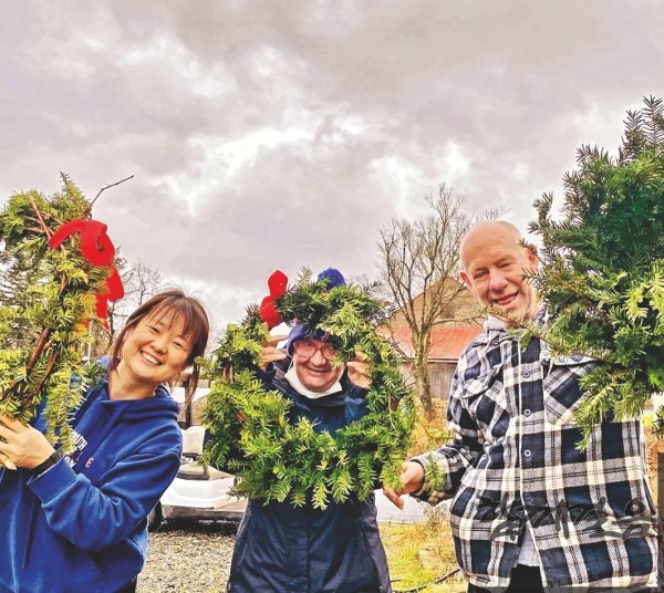 ▲ 빌리저들과 함께 크리스마스 리스를 만드는 모습