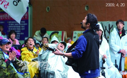 수많은 투쟁의 현장을 두루 살펴봤을 테니까, 그는 정말 치열한 싸움의 외침을 생생하게 목격했을 것이다. 그렇다면 가장 이해가 안 되는 현장이라는 것도 있을까? 모든 게 다 절박함의 절규로 진행되는 건 아닐 거라는 생각이 떠올랐기에, 그 대목을 새로운 질문으로 던졌다. 아주 많단다. ‘정말 없어졌으면 좋겠다’ 하는 노조 또한 부지기수라는 것이다. 대표적인 예로, 모 재벌기업의 대규모 노조집회에 참석해 노래하기로 되어 있어 공항까지 달려갔는데, 전화 한 통이 왔단다. ‘비 오는 우천 관계로 집회가 취소되었습니다.’ 박준 씨의 이어질 다음 반응은 이미 우리가 알고 있을지도 모르겠다. 소리를 질렀단다. ‘야, 이런 개 같은 놈들아, 이 정도의 비로 집회를 취소해? 그게 노동자의 투쟁이냐!’