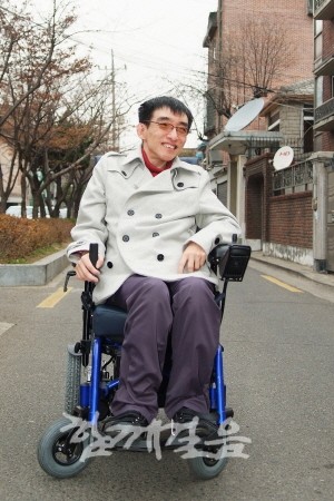 “하도 양쪽 팔이 저리고 아파서 97년에 처음 국립재활원에 갔더니, 처음 몇 번은 모르겠다고 하더라고요. 이것저것 다 검사했는데도 모르겠대요. 그래서 CT 한 번 찍어보자고 했어요. 사실… 뇌성마비가 CT나 MRI 찍으려면 반은 죽어야 돼요. 자꾸 움직이니까요. 그래서 MRI가 없던 당시 국립재활원에서 CT 촬영을 했는데 증세가 조금 있는 것 같다고 해서, 영동세브란스병원으로 가 MRI를 찍었더니 목디스크로 판명이 났어요. 그래서 98년에 첫 수술을 하고 2002년에 두 번째 수술을 한 뒤부터 아예 주저앉게 되었죠. 그런데 대부분의 뇌성마비 장애인들은 목디스크를 안고 살아요. 기본적으로 몸이 삐뚤어져 있기 때문에 어릴 때는 모르다가, 나이가 들면서 그게 고착화되면서 기력이 빠져가면 아프기 시작하는 것이죠. 제 주변의 분들도 거의 대부분 저와 같은 케이스라고 하십니다.”