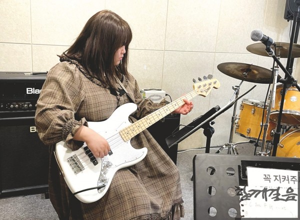 최근에 시작한 취미인 베이스 기타를 치는 김마리 씨