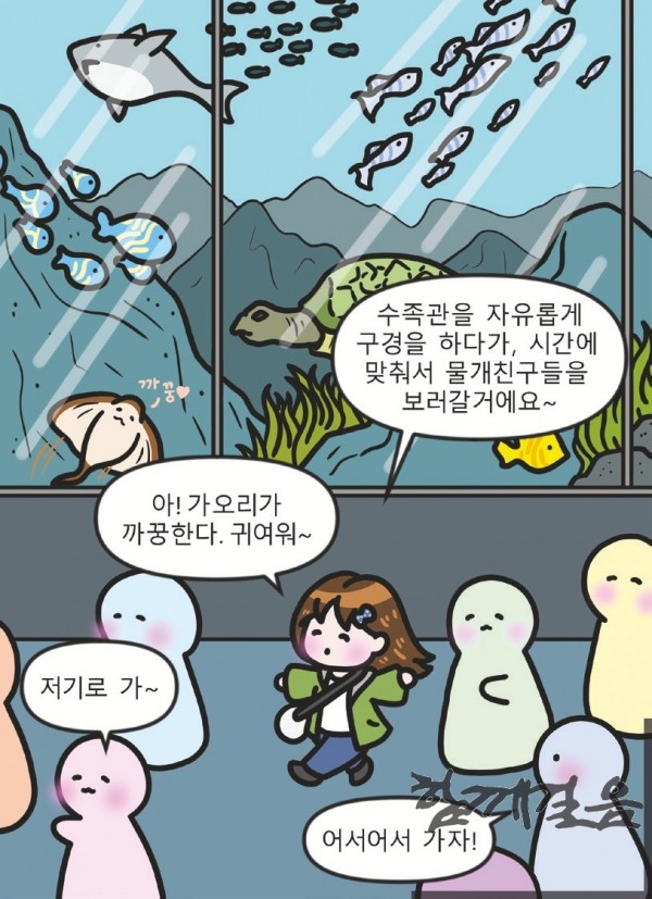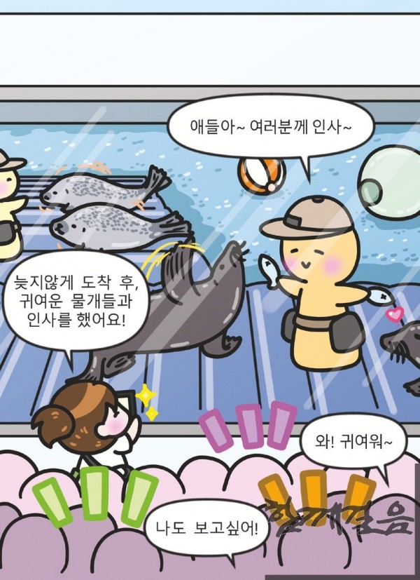 수족관을 자유롭게 구경을 하다가, 시간에 맞춰서 물개친구들을 보러 갈 거에요~