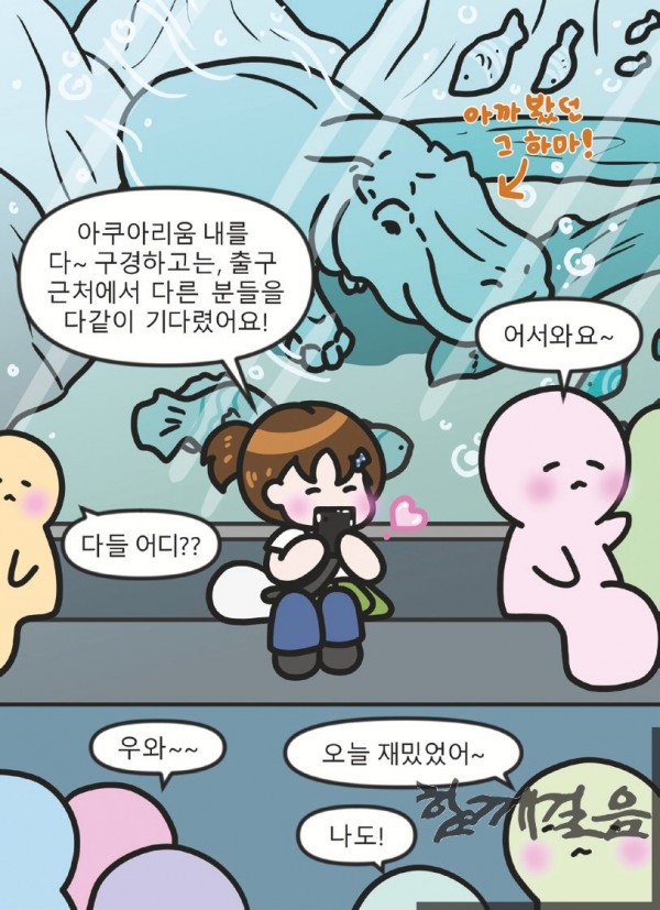 아쿠아리움 내를 다 ~ 구경하고는, 출구 근처에서 다른 분들을 다같이 기다렸어요!