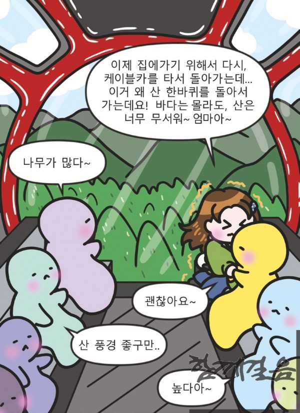 이제 집에 가기 위해서 다시, 케이블카를 타서 돌아가는데.. 이거 왜 산 한바퀴를 돌아서 가는데요! 바다는 몰라도, 산은 너무 무서워 엄마아 ~~~