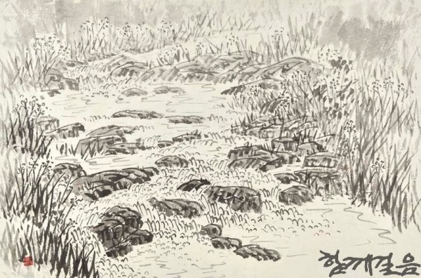 <정릉천> 56.5 x 37.5cm, 한지, 수묵, 2025