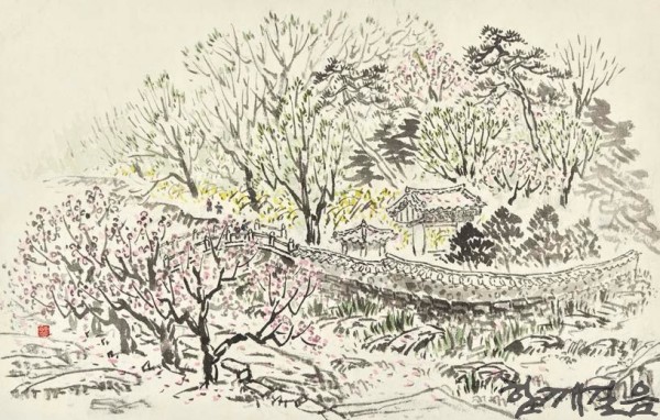 <정릉천의 봄> 55x35cm, 한지, 수묵담채, 2025