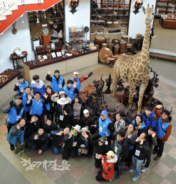| ▲ 한국장애인고용공단 임직원으로 구성된 ‘디딤도리’ 사회공헌단이 발달장애인과 함께 떠난 ‘가을단풍 힐링여행’ 중 아프리카예술박물관에서 발달장애인들과 기념포즈를 취하고 있다. | ||