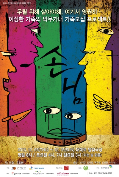 장애인 자녀를 위한 엄마의 가족 모집을 그로테스크적인 웃음을 이용해 무대로 옮긴 연극 <손님>이 오는 5일부터 15일까지 대학로 달빛극장 무대에 오른다.