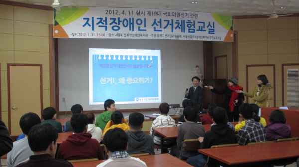 서울시립지적장애인복지관은 오는 4월 11일 실시하는 제19대 국회의원선거를 앞두고 지적장애 유권자를 대상으로 모의 선거교육을 실시했다고 밝혔다.