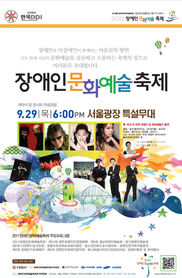 한국DPI(한국장애인연맹)는 오는 29일 오후 6시 서울시청 열린광장 특설무대에서 ‘2011 장애인문화예술축제’를 펼친다고 밝혔다.