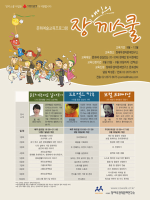 하반기 장끼스쿨 프로그램은 ▲문화기획자로 살아보기 ▲프로젝트 하루 ▲보컬 트레이닝 등 3코스로 매주 1회씩 10강좌로 진행된다.