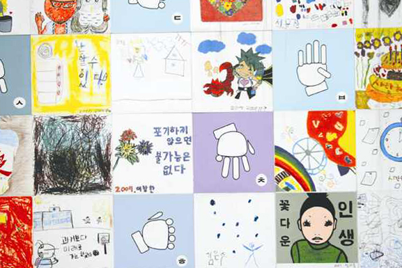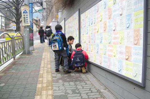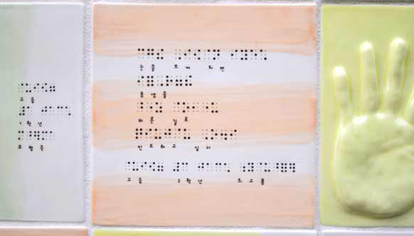 요즘 서울시는 ‘도시갤러리 프로젝트’라는 사업을 기획하여 지원하고 있다. 이 사업의 일환으로 14m, 173명의 시각장애가 있는 학생들의 작품이 ‘만지는 글, 아름다운 기억’이라는 타이틀로 글자디자인의 미적영역으로써 수화·점자의 예술성을 표현한 벽화로 탄생되었다.