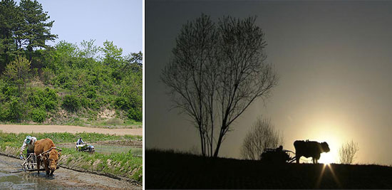 농약을 치지 않는 할아버지가 골자비 키타진 자바라 같은, 농약회사에서 판촉품으로 나눠준 모자를 쓰고 일하는 장면을 두고 감독은 “‘이상한 몽타주’일 수도 있고 자연스러운 일상의 장면일 수도 있을 것”이라 말한다. “기계농 대 자연농, 자동차 대 소달구지, 미국산쇠고기 반대 시위와 소달구지 등도 의도한 대조 대비가 아니라 그저 엄연한 농촌 풍경”이라 말한다. 그 엄연함이 성찰을 낳는다.