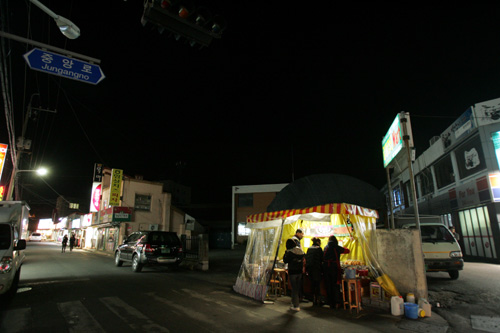 부부가 이 곳에서 포장마차를 한 것은 13년째. 오랫동안 한 자리를 지키다 보니 허물없이 가까워진 이웃들이 많다. 노점상 단속 때문에 쫓겨나곤 하면서도 다시 일을 시작할 수 있었던 데는 부부의 자리를 지켜준 주변 상가 사람들의 도움이 컸다.