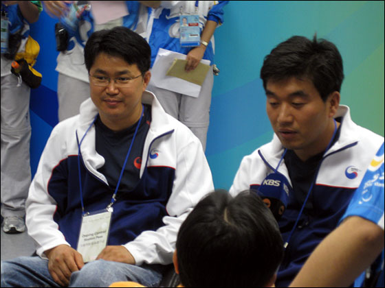 | ▲ P4 혼성 50m 권총 결승에서 금메달을 따낸 박세균(오른쪽)과 은메달을 따낸 이주희가 인터뷰를 하고 있다. ⓒ베이징/공동취재단 | ||