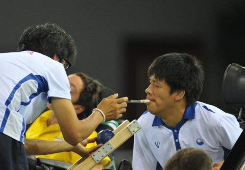 | ▲ 보치아BC3단체전경기중인정호원 ⓒ대한장애인체육회 | ||