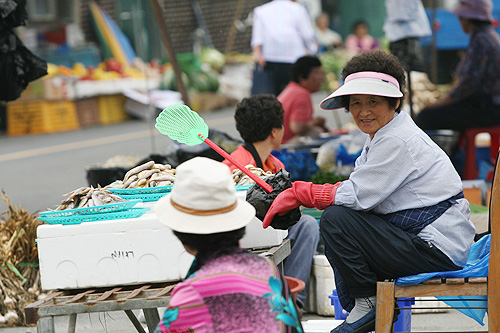아홉 시 다 돼서야 장에 손님이 들어선다. 진도의 다른 시장 상인들이 대부분 그렇듯 오일시장 상인들도 모두 손님들을 ‘아짐’이라고 부른다. “아짐, 뭐 사러 일찍이 오셨소.” “어이 아짐, 깡다리가 좋아.” “아짐, 까시락장대(크기가 작은 장대) 싸게 가져갈라.”