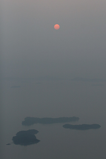| ▲ 섬 위로 해가 보인다. 바다는 온통 단색으로 단아했다. ⓒ 김창헌 기자 | ||